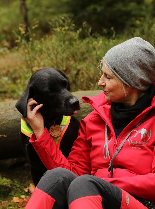 Ausgebildete und geprüfte Rettungshundeführerin im Bereich Mantrailing und Flächensuche